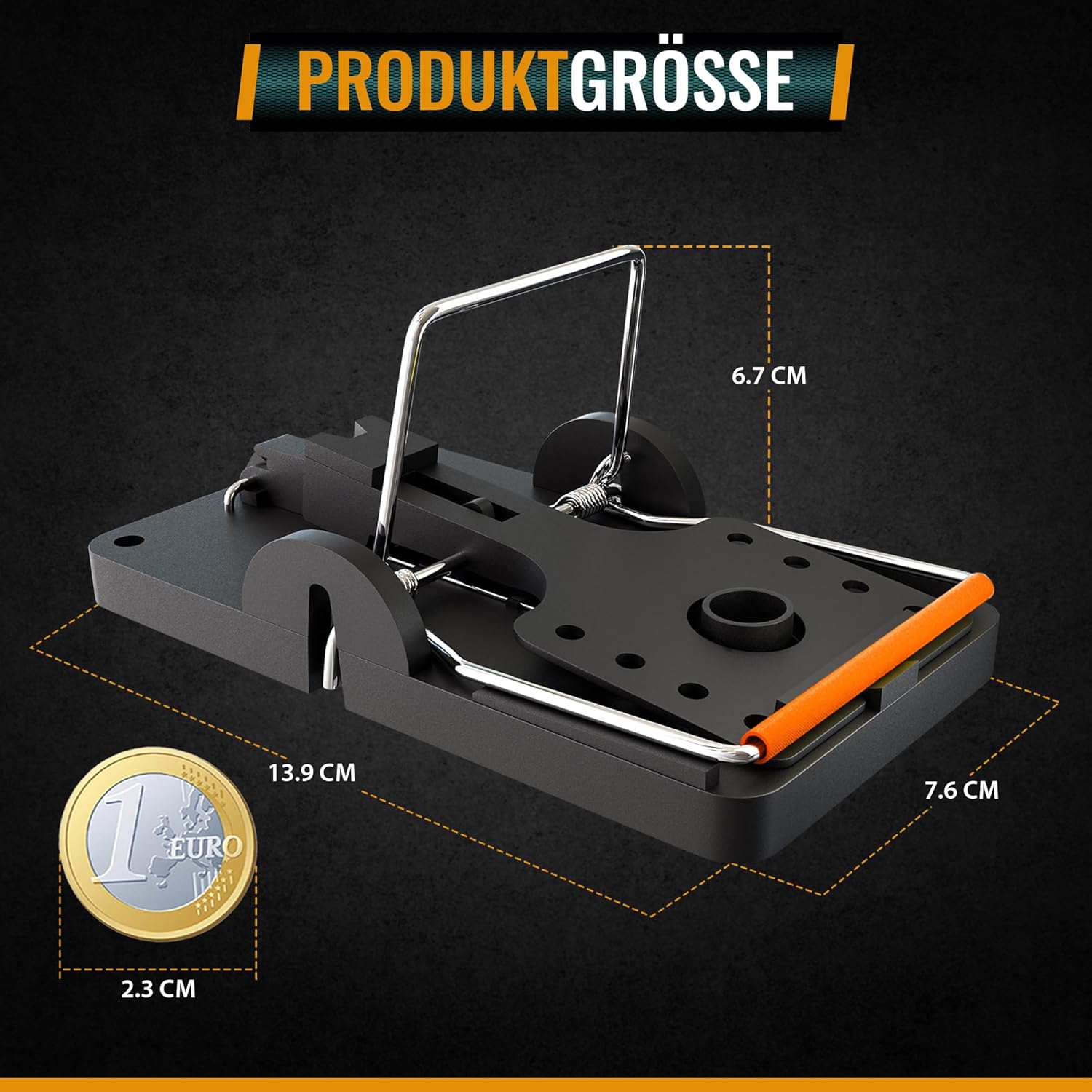 Hinweis: Außerhalb der Reichweite von Kindern und Haustieren aufstellen. Gespannte Falle nicht mit bloßen Händen berühren – Verletzungsgefahr.