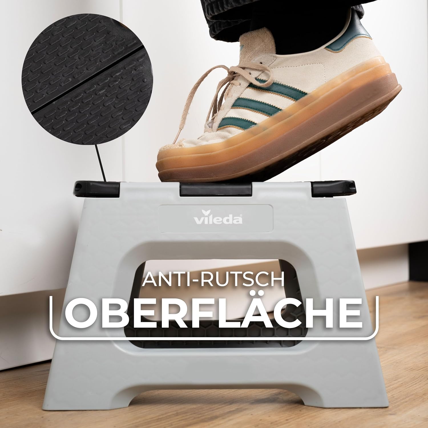 Vileda Tritthocker klappbar 23 cm – Stabil bis 150 kg, rutschfest & platzsparend